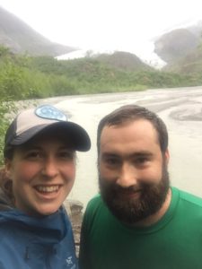 Jayleen & Chris on a hike with the Herbert Glacier in the background