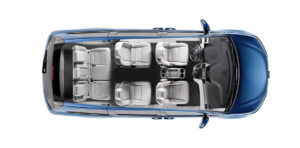 Fluke is a standard Dodge Grand Caravan mini-van that seats 6 passengers at the maximum—with three passengers in the back, two passengers in the middle of the van (in bucket seats) and one passenger in the front, next to the driver.
