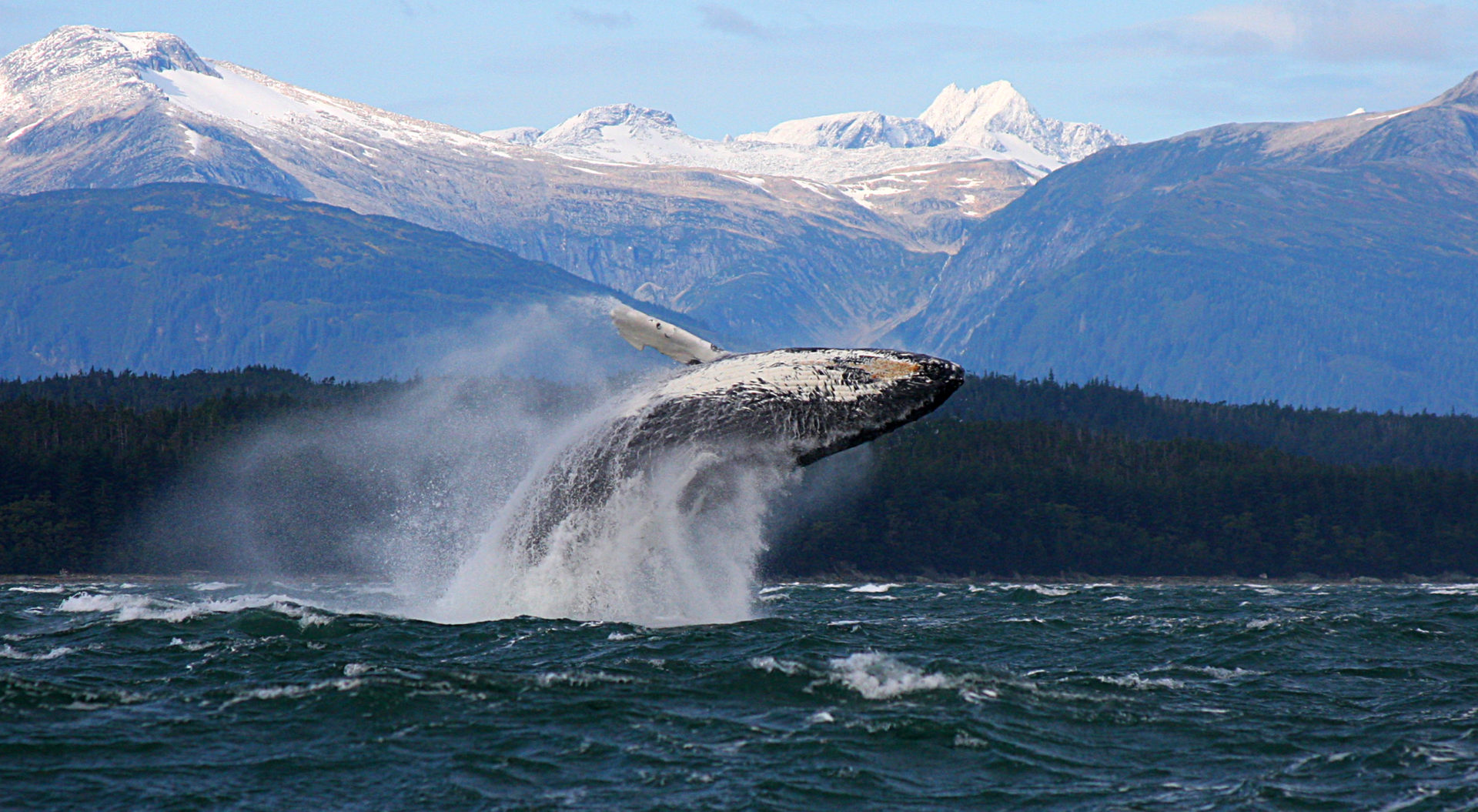 Even more rare is a “breaching” humpback. A breach is characterized by the whole body of the whale being thrusted up and out of the water. It is a spectacular sight to see. But because these whales come to Juneau, Alaska to feed and to gain—not to party it is seen only (on average) once a month on tours. The fact remains, that to boost a 60,000 to 80,000 pound whale out of the water is a really big calorie burner and since the whales want to GAIN weight, it goes against their nature. With that said, marine biologists believe that when they do breach in the Alaskan waters it is in some sort of communication to other whales or to express an extreme emotion